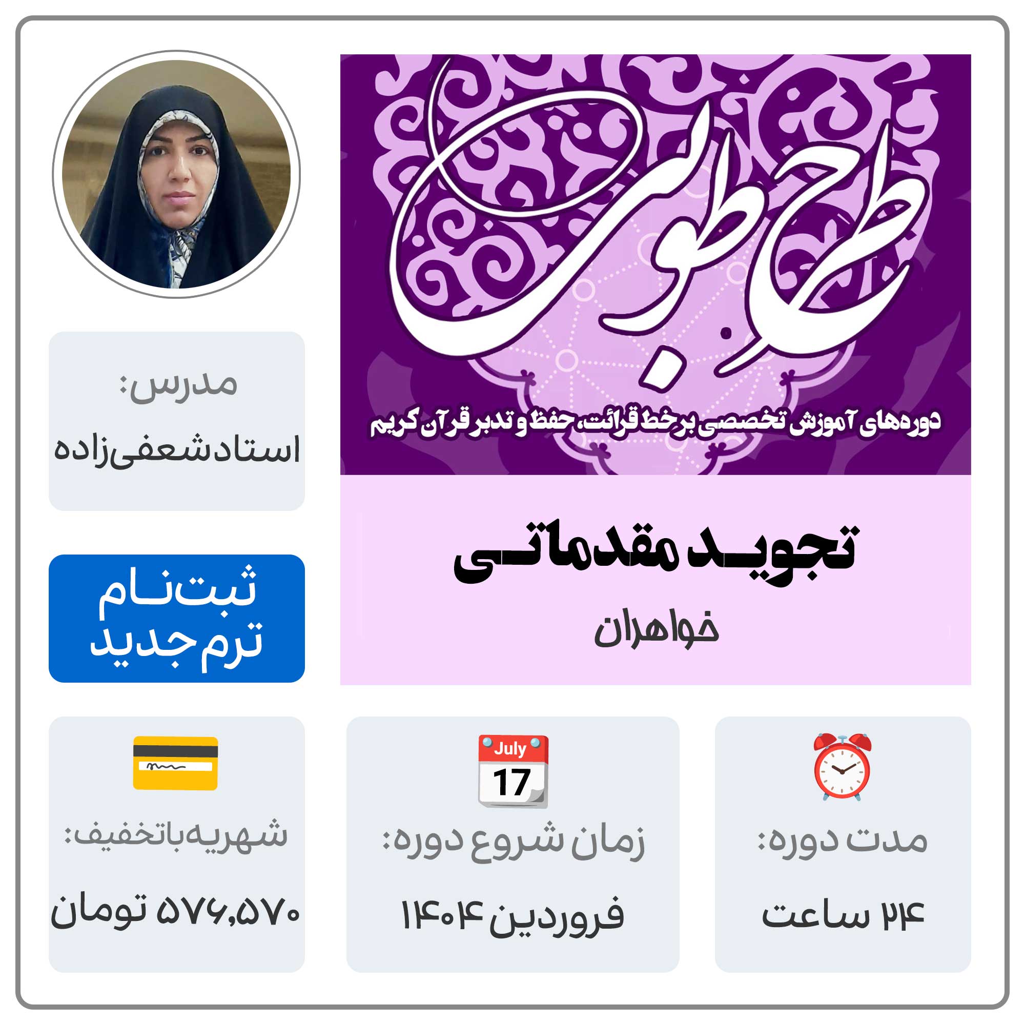 طرح طوبی(تجوید مقدماتی خواهران)